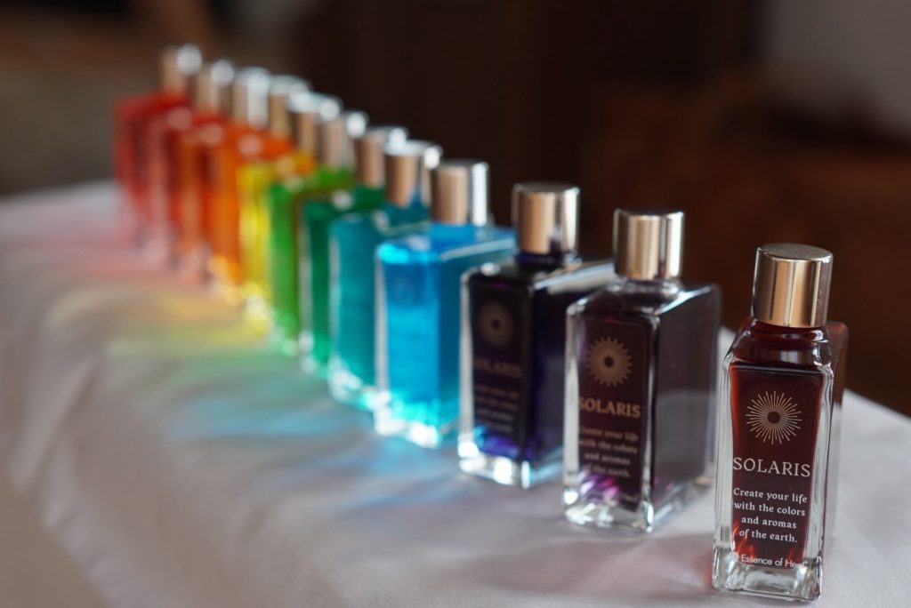 12本のチャクラカラーボトル + 香り(エッセンシャルオイル)を使用